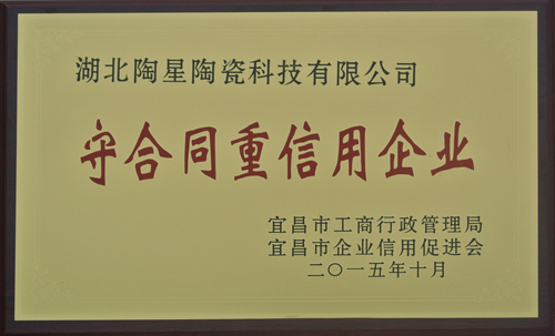 近日,從宜昌市工商局獲悉,湖北陶星陶瓷科技有限公司獲宜昌市第十屆“守合同重信用企業(yè)”(2013-2014年度)榮譽(yù)稱號(hào),為公司在日用陶瓷行業(yè)持續(xù)發(fā)展增添了信用度和美譽(yù)度。